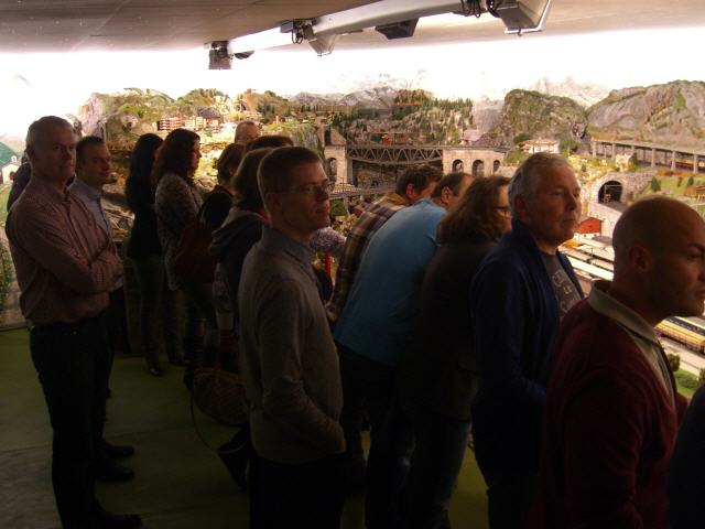 Das bunt gemischte Publikum von Firmenausflügen freut sich ebenso, wie "alte" Profimodellbahner. Der Grund ist die faszinierende Show in Spur0, eingebettet in eine schöne Landschaft.